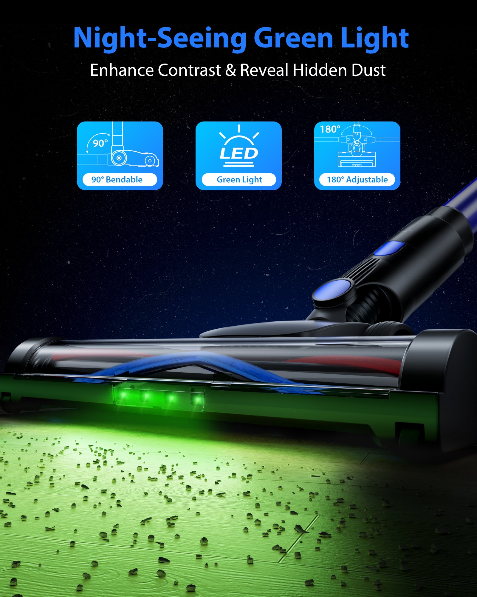 - ššš¢šš§šš¢šš¢š šš«ššš§ šš¢š š”š ššØš« šš„ššš«šš« šš„ššš§š¢š§š - The floor brush's 520nm green LED exposes hidden dust while reducing glare. Its adjustable head reaches tight spaces, eliminating furniture-moving hassles.